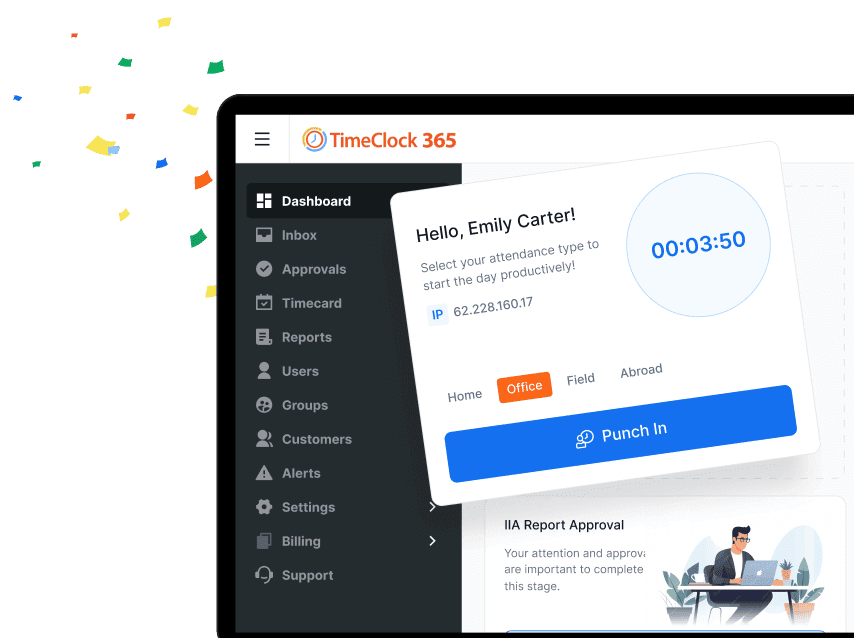 - Managers get a live view of who is currently working, who is late, and who is absent
