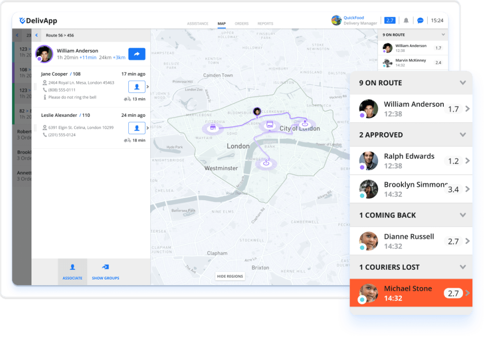 - Enables users to send delivery notifications to customers via SMS or phone calls