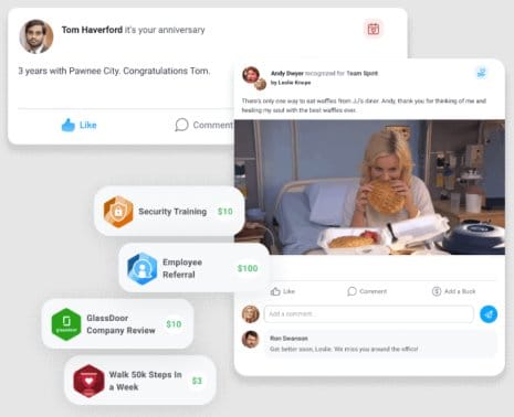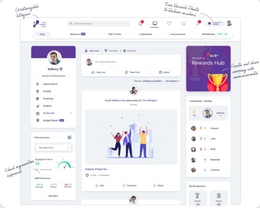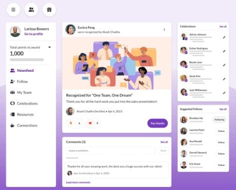 - It offers a public feed where employees can like, comment, and celebrate recognition posts