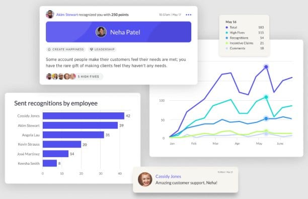 - Users can track recognition frequency, reward redemptions, and participation rates