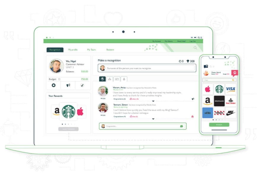 - Organizations can set budgets, recognition limits, and approval workflows