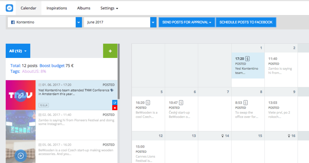 Kontentino is a cloud-based social networking software suitable for businesses of all sizes, such as architecture, marketing, advertising agencies, food and beverage, retail, etc. It includes assignment management, approval process control, and automatic notifications. Allows users to preview and schedule posts to share on various social media websites, such as Facebook, Instagram, Twitter. Kontentino social networking software allows users to manage various posts from a single calendar. Also provides a free trial.