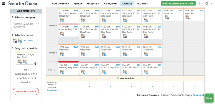 SmarterQueue allows an admin to gain insights into social history, trending topics, and content engagement via interactive charts. Enables users to schedule posts on multiple social media websites, such as LinkedIn, Facebook, Instagram, and Twitter. Also provides a free trial.